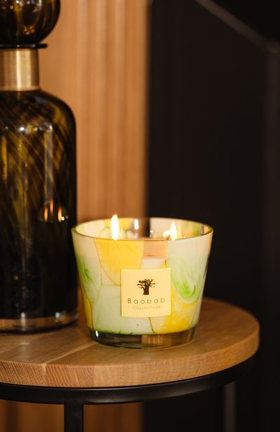 Аромат свечи из коллекции Woods ведет за собой в сказочный лес Броселианд, который хранит тайны бретонских легенд. Композицию составили из землисто-пряных нот смолы элеми, ветивера и мха, покрытого утренней росой. Узор на выдувном стекле в серо-лавандовых тонах напоминает полосы на многовековой древесине. Воска весом 500 г хватит примерно на 60 часов непрерывного горения.
