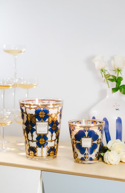 Переливаясь мягкими полутонами инжира, сандала и листьев фундука, свеча Bounkani (500 г, хватит на 60 часов непрерывного горения) приглашает в парфюмерное путешествие по одноименному региону Кот-д’Ивуара. Атмосферу дальних странствий поддерживает и узор на стакане, созданный художниками фабрики Uniwax. Мотив в виде баобабов нанесли на пленку, которую затем спекли со стеклом п ри высокой температуре.