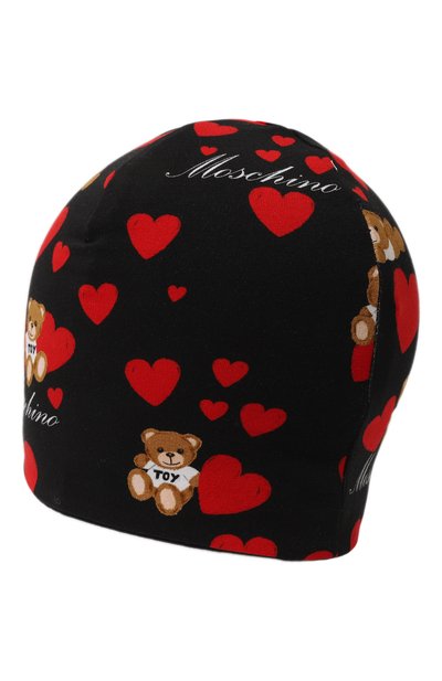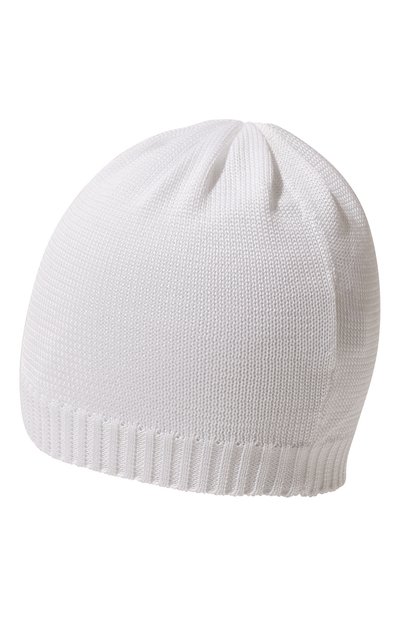 Двухслойную шапку бини вязали из хлопковой пряжи. Модель с декоративными брызгами разноцветной краски украсили рельефным логотипом на широком отвороте.