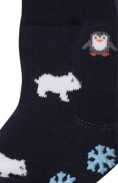 Носки Winter Animals с паттерном выполнили из хлопкового трикотажа We Care с добавлением нейлона и эластана. Подошву модели дополнили противоскользящей отделкой в виде снежинок.