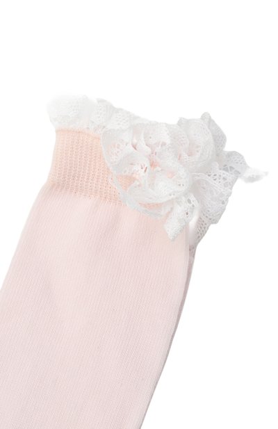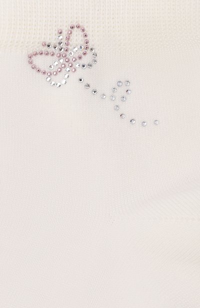 Носки с плоскими кеттельными швами выполнили из пряжи We Care на основе органического хлопка и полиамида. Модель с вышитым декором на паголенке дополнили набором временных татуировок от бренда Meri Meri.