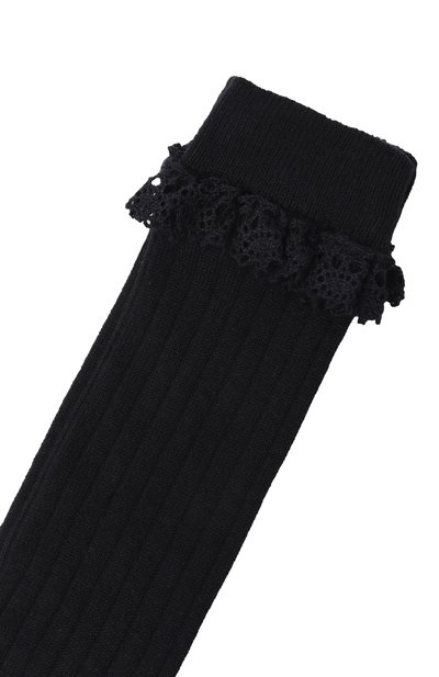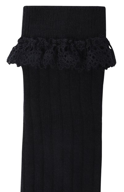 Носки с плоскими кеттельными швами выполнили из пряжи We Care на основе органического хлопка и полиамида. Модель с вышитым декором на паголенке дополнили набором временных татуировок от бренда Meri Meri.