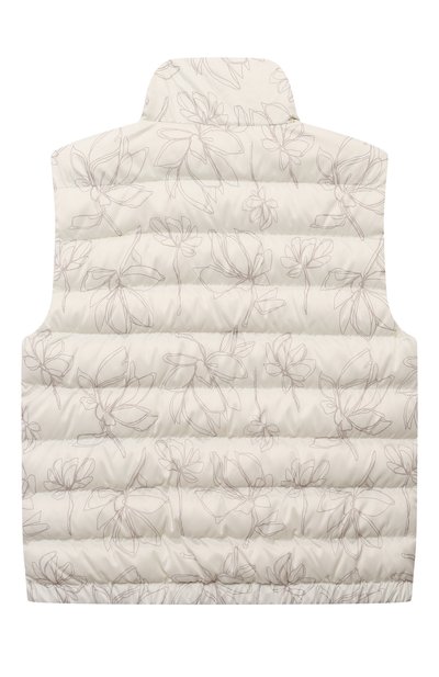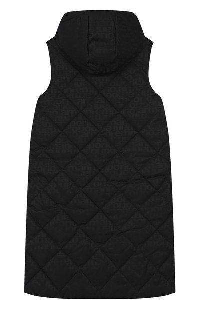 Утепленный жилет с подкладом из твила сшили из экомеха на основе полиэстера. Планку с брендированными кнопками и листочки боковых карманов выполнили из мелкозернистой экокожи.