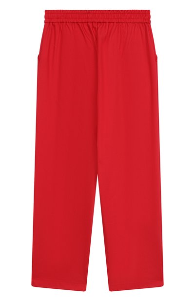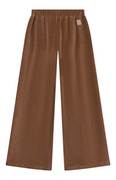 Брюки из хлопкового вельвета дополнили боковыми карманами на золотистых брендированных кнопках. Сзади под эластичным поясом-кулиской вышили фирменный логотип.