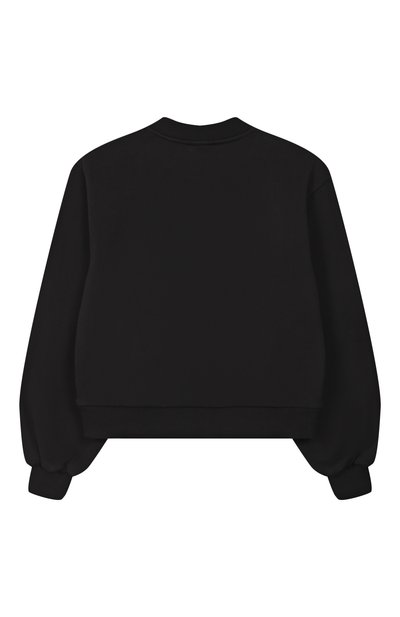 Свитшот с поясом, манжетами и круглой горловиной в рубчик украсили вышитым логотипом марки спереди. Для изготовления модели использовали бархат из органического хлопка.