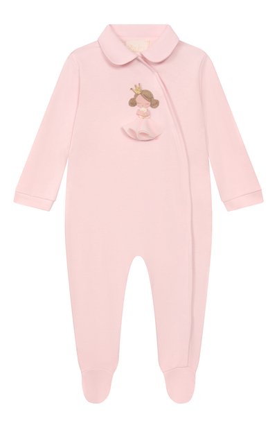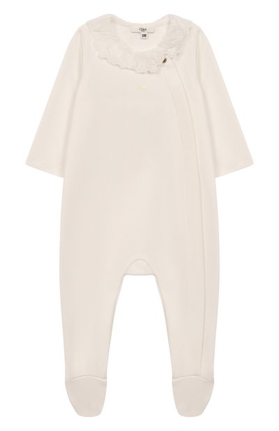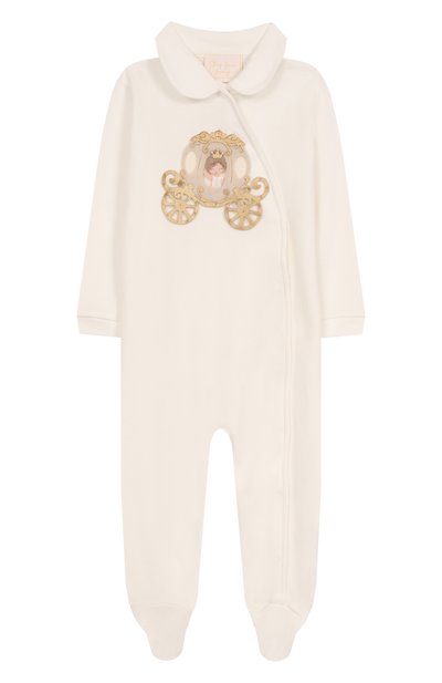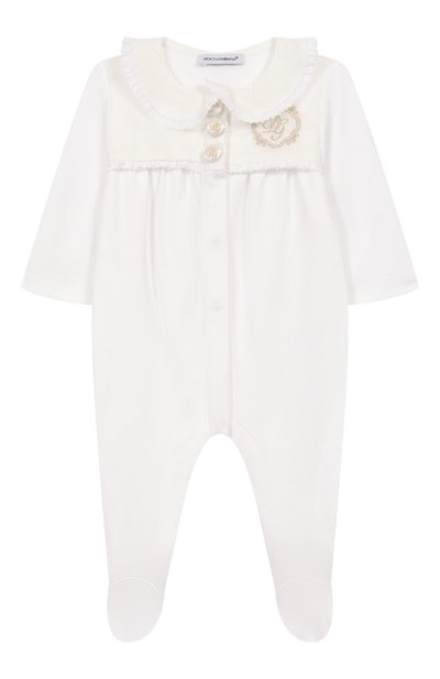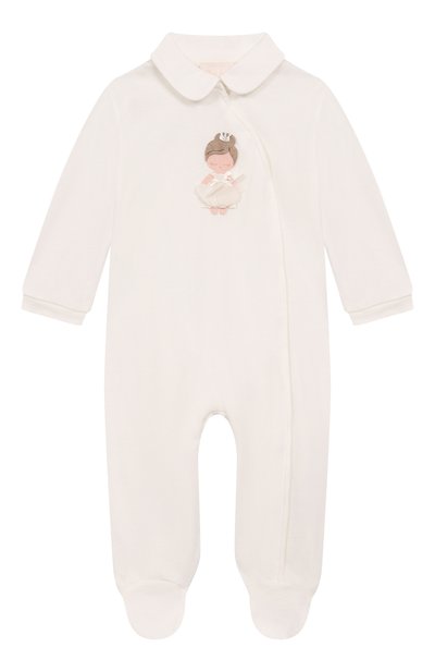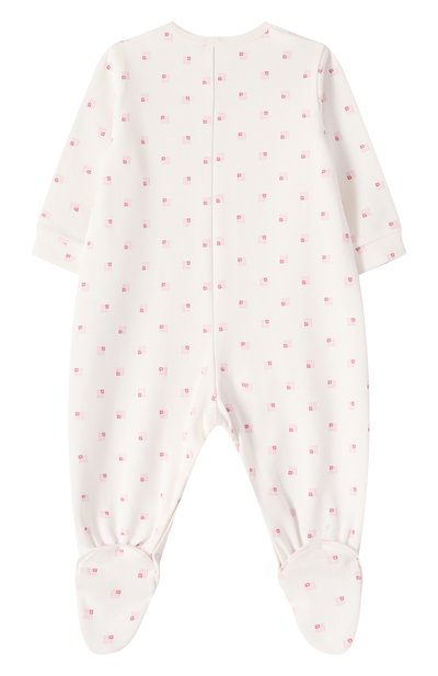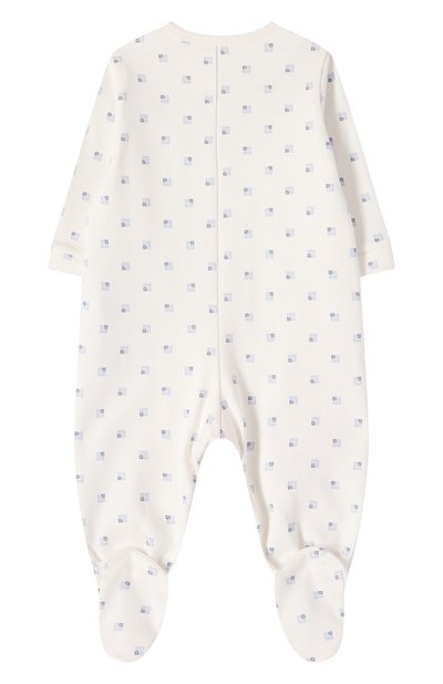 Пижаму из интерлока на основе органического хлопка дополнили отложным воротником и карманом из перкаля, украшенными фирменной вышивкой в тон. В комплекте – шапка с отворотом и нагрудник.