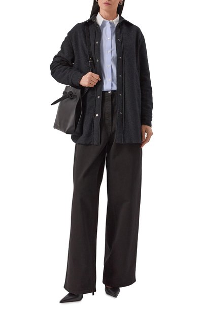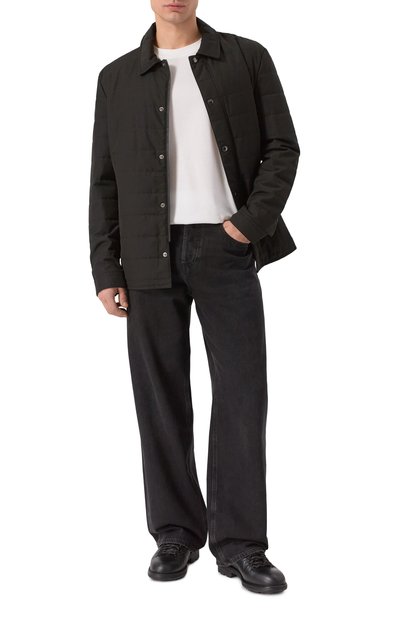 Куртку, утепленную гусиным пухом и наполнителем Thindown, выполнили из шерсти. Локти дополнили овальными нашивками, в тон которым – отложной воротник. Модель с боковыми карманами застегивается пуговицами.