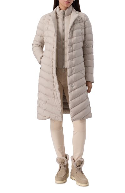Пуховик Le Nord с воротником-стойкой и боковыми карманами выполнили из японского полиэстера. Модель со стеганым шевронным мотивом застегивается встречной молнией.