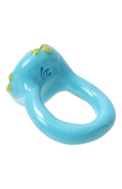 Кольцо с оттиском в виде монограммы LA на внутренней стороне выполнили вручную из полимерной глины. Модель украсили крупным кристаллом и цветочным узором со стразами.