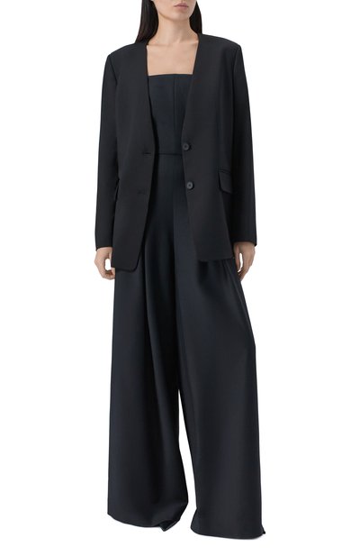 Комбинезон Rudbeckia оттенка Midnight Winter Sky выполнили из бархата на основе вискозы и шелка. Модель с корсетным лифом, открытой линией плеч и боковыми карманами застегивается молнией сзади. В комплекте – полупрозрачный шарф.