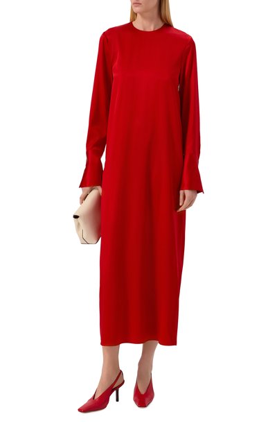 Приталенное платье Sade с клапанами спереди и шлицей сзади выполнили из полиэстера. Модель с цветочными аппликациями вдоль открытой лини и плеч застегивается потайной молнией на спинке.