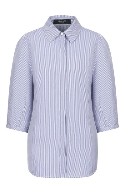 Широкие брюки с четырьмя карманами сшили из хлопкового поплина в полоску. Укороченную модель с высокой посадкой и стрелками дополнили поясом с крупными шлевками и эластичной вставкой.